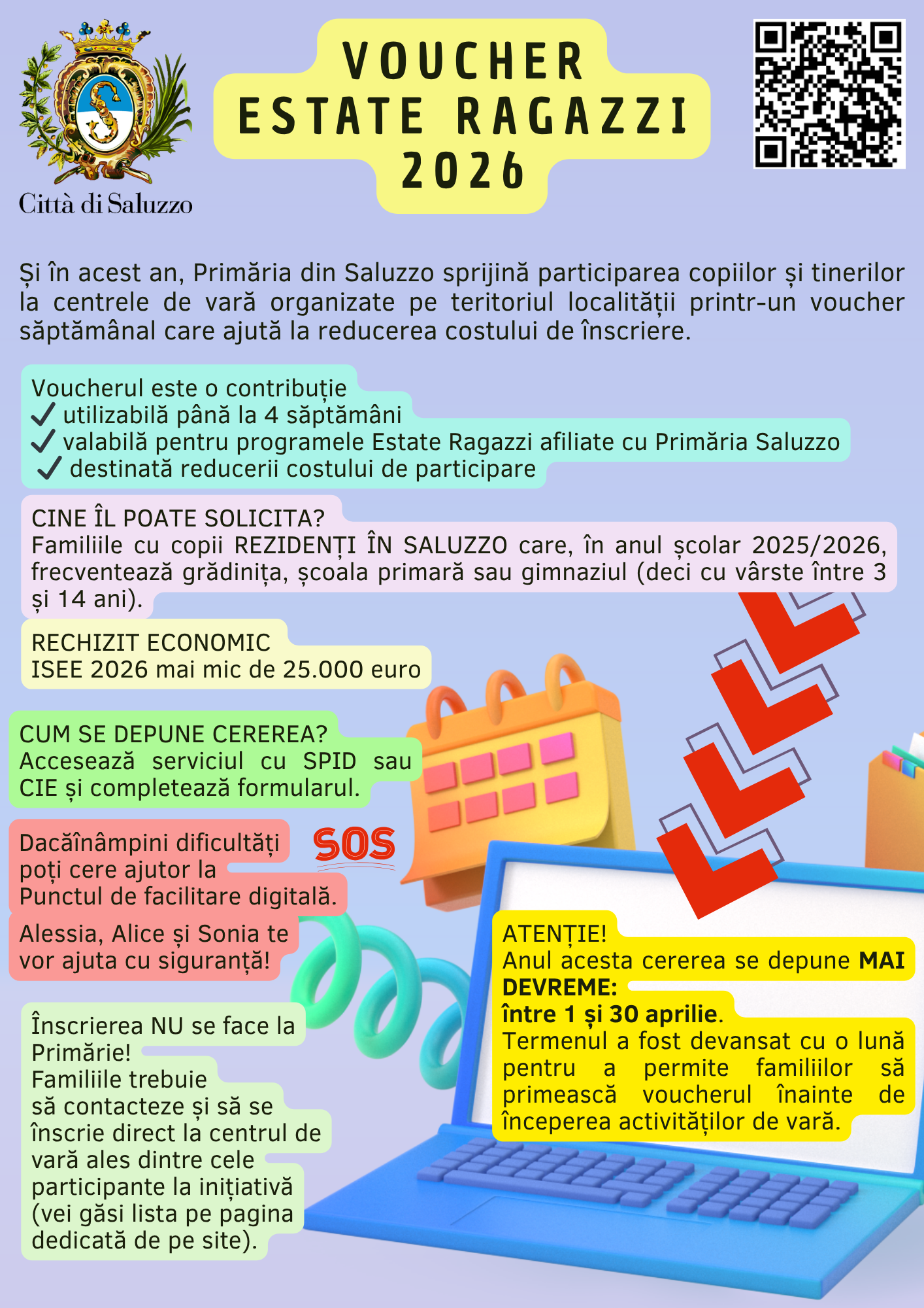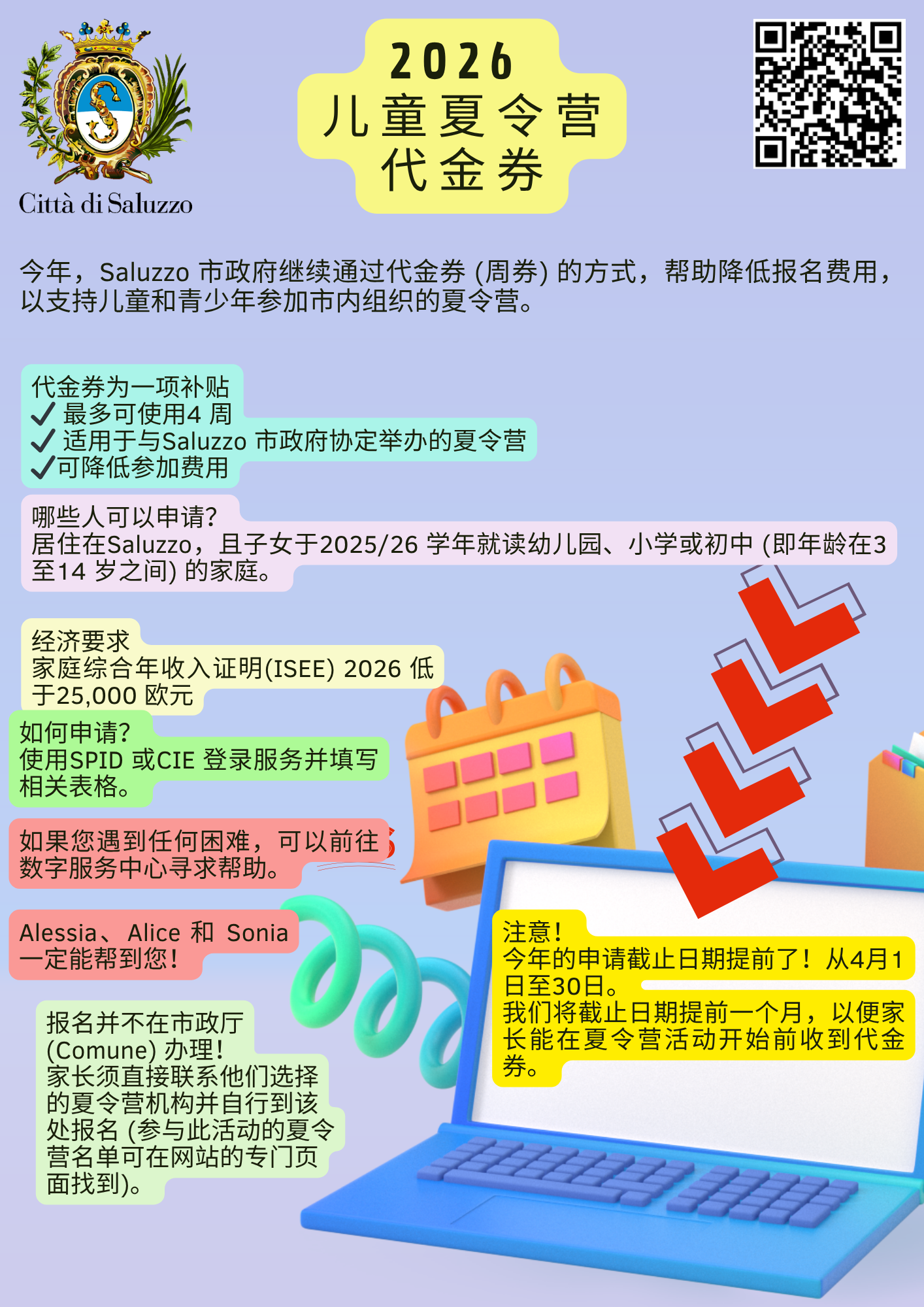 Famiglie residenti a Saluzzo con figle e figli tra i 3 e i 14 anni (frequentanti asilo, scuola primaria o secondaria di primo grado nell’a.s. 2025/26), con ISEE 2026 inferiore a 25 mila euro.